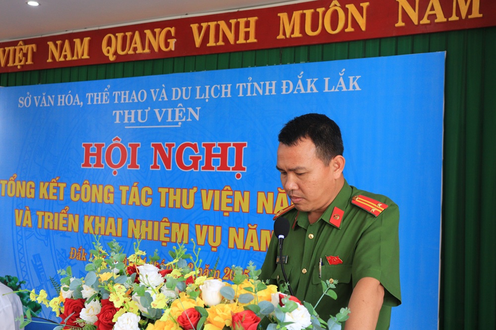 Phát biểu tại Hội nghị, Trung tá Vũ Văn Thụy, Phó Đội trưởng Trại giam Đắk Trung nhấn mạnh hiệu quả phối hợp giữa Thư viện tỉnh và đơn vị trong công tác phục vụ sách báo, góp phần nâng cao đời sống tinh thần cho phạm nhân, đồng thời mong muốn tiếp tục tăng cường phối hợp trong thời gian tới.